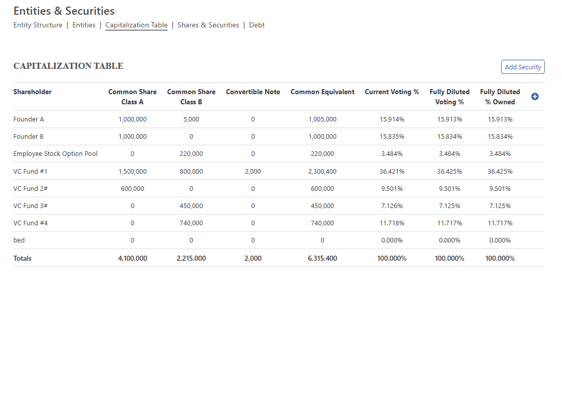 Cap Table: Ownership and Voting at a Glance