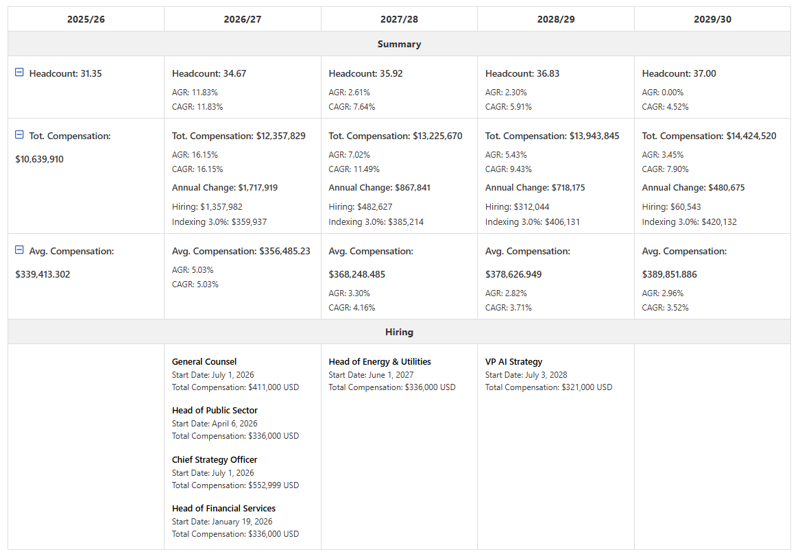 Planned Hiring & Compensation at a Glance