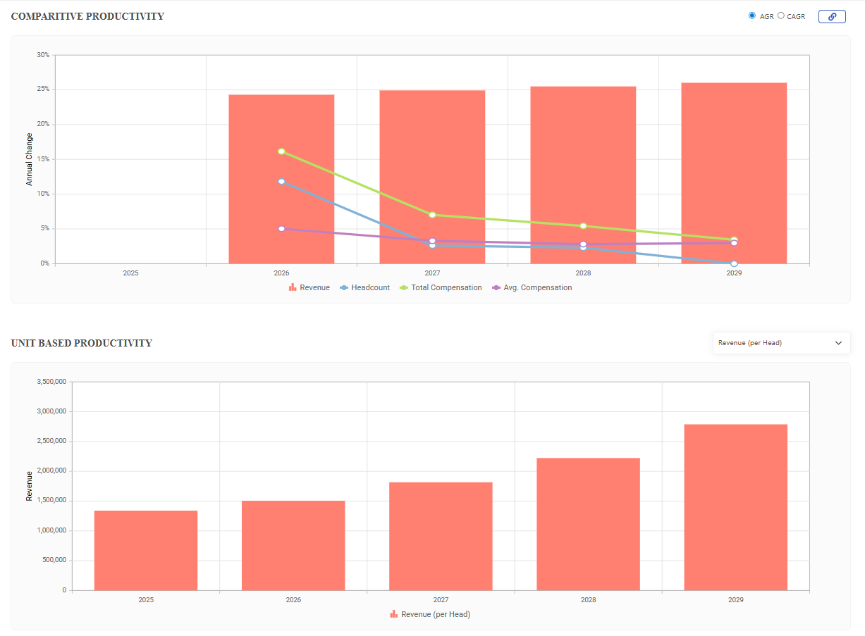 Link compensation and headcount directly to roadmap rows to evaluate workforce productivity, and ensure your future organization is sized right for your strategic goals.