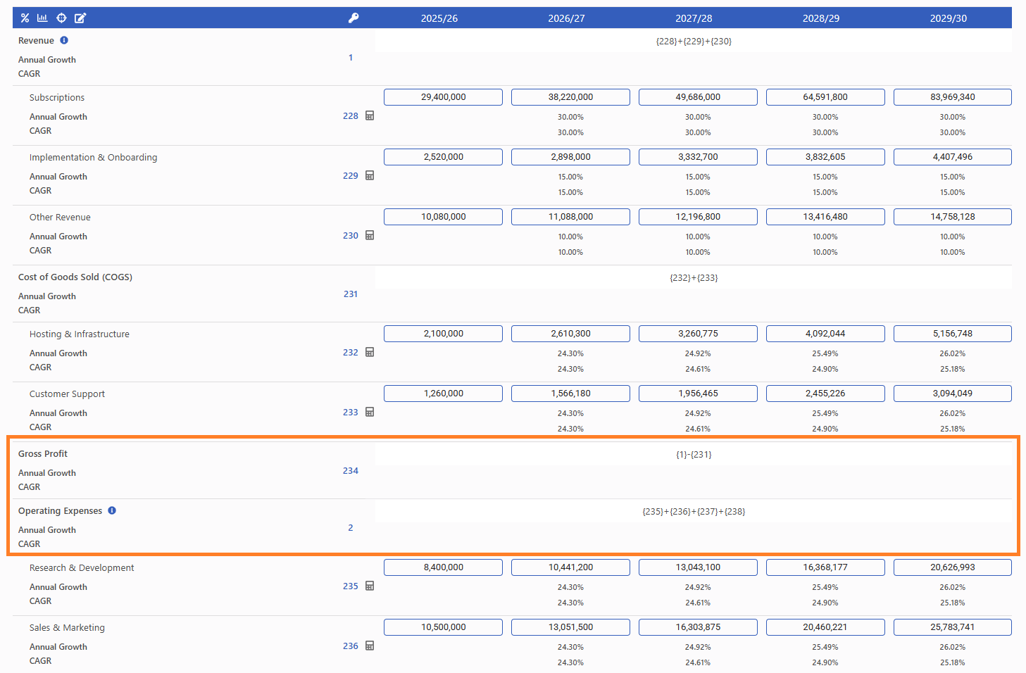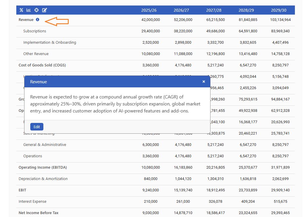 Get instant visibility into your growth trends with annual and CAGR numbers available at the click of a button.