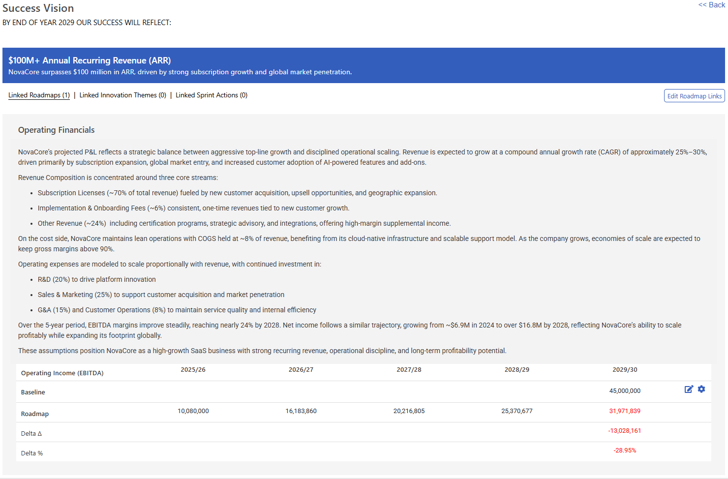 Success Visions lets you set clear baselines and link your roadmaps so you can measure progress and stay aligned with your long-term vision.